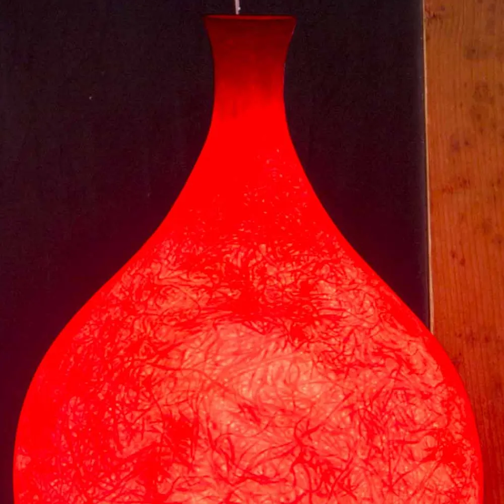 Innovatives Design für die Luce 2 Tischleuchte, die an die Form einer Ampulle erinnert und ein beeindruckendes „Mondlicht“ enthält.