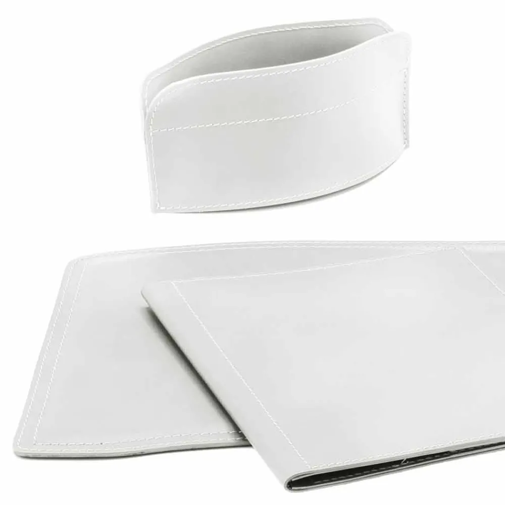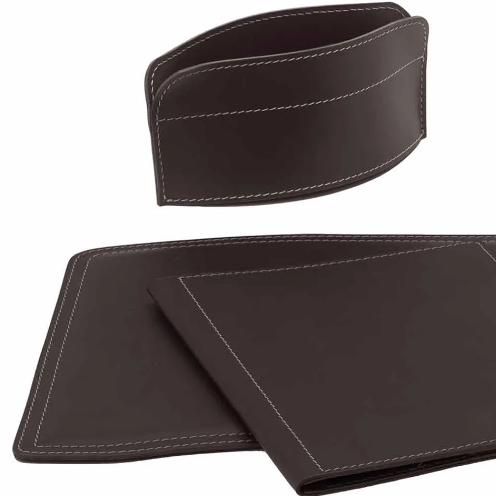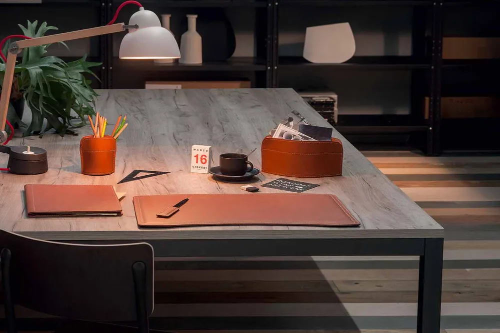 Schreibtischzubehör aus gebundenem Leder, Set bestehend aus 5 Teilen, Made in Italy Brando