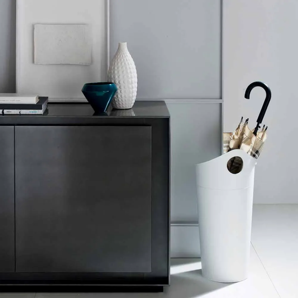 Pluvia ist ein einzigartiger Schirmständer, handgefertigt von italienischen Handwerksmeistern. Es ist vollständig aus regeneriertem Leder, sowohl äußerlich als auch innerlich. Der Boden ist aus Sperrholz, ebenfalls mit Leder bezogen. Im Inneren befindet sich eine praktische Kunststoff-Tropfschale.