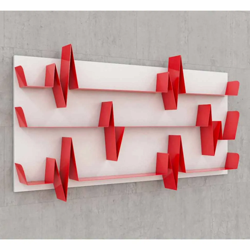 Das Schlagen des Herzens und sein Trasse werden Regale für diese original Wand Bücherschrank aus lackierten Eisen, ideale Ort um Bücher oder Zubehör zum auflegen. Battikuore ist ein Ergänzung, die die Umgebung liefert und zur gleichen Zeit ist sehr funktional, dank der dynamische Form des Trasse, die auch als Ablage dient, ist auch ein praktischen Buchstützen.