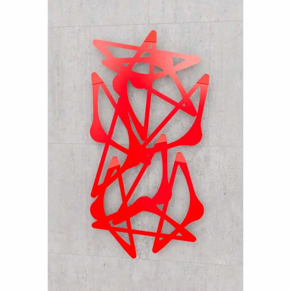 Bringen Sie Ordnung in Unordnung. Wenn nicht in den Worten, zumindest mit den Jacken und Mäntel. BlaBla ist ein Sympatisch Kleiderbügel aus lasergeschnittenen Metall, mit der Form eines chaotisch und unordentlich stilisierten Kleiderbügel. BlaBla ist in Weiß, Rot, Schwarz, Orange und Grün erhältlich.