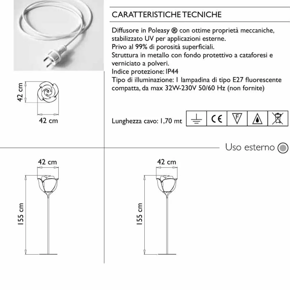 Außen Stehlampe im modernen Design in Form einer Rose, hergestellt in Italien.