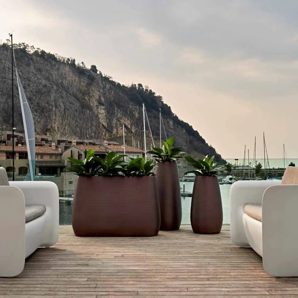 Moderne Innen- oder Außenvase aus dunklem Perlenkunststoff in 3 Größen erhältlich, hergestellt in Italien, 2 Stück.