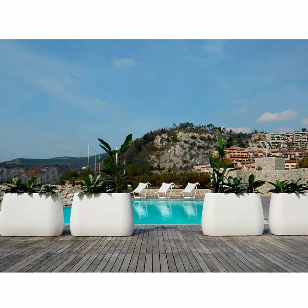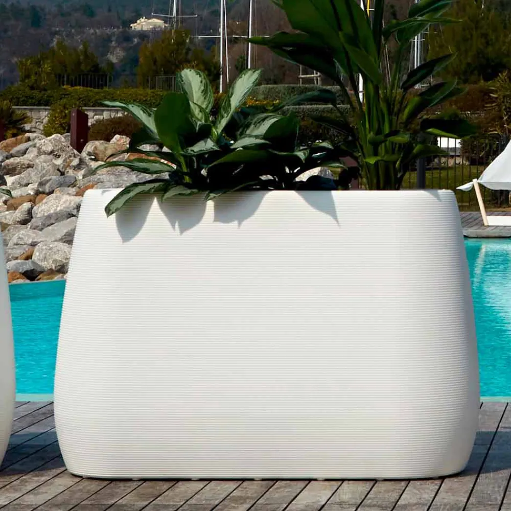 Moderne Vase für draußen oder drinnen in geprägtem weißem Poleasy, hergestellt in Italien Design in 3 Größen, 2 Stück.