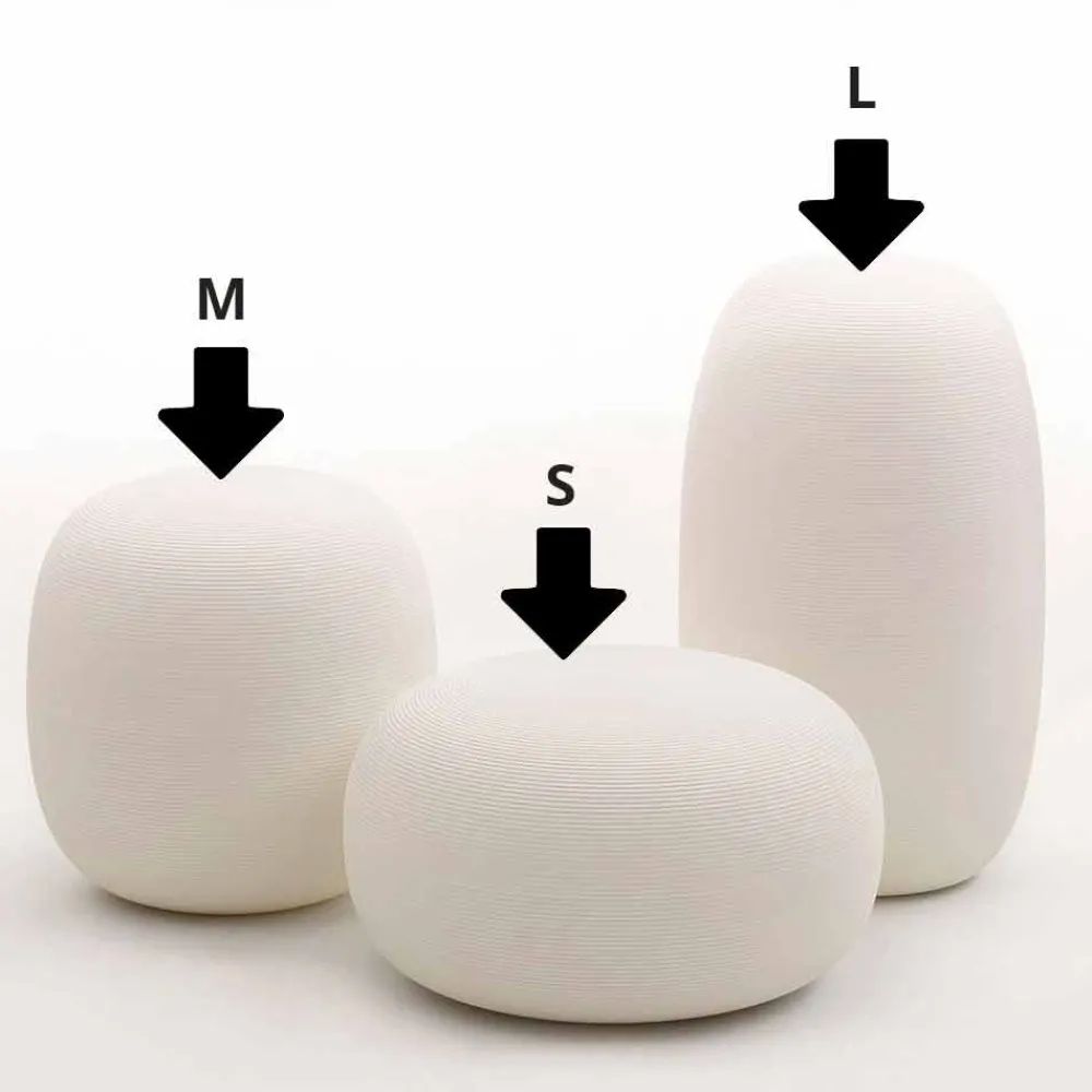 Zierlampe mit minimaler Textur ist in verschiedenen Farben erhältlich. Die Pandora gibt es für jede Version in drei verschiedenen Größen: klein 31×55 cm, mittel 44×44 cm, groß 40,5×70 cm.