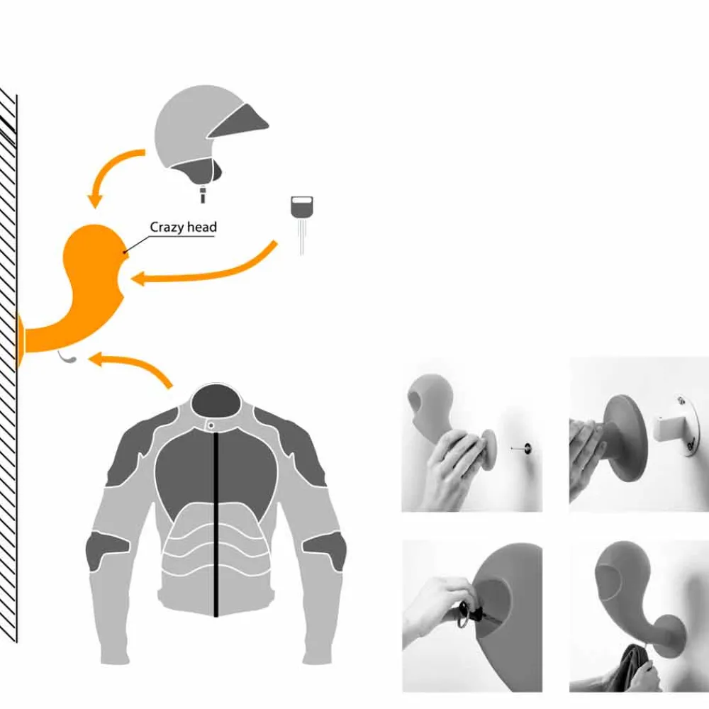 Der Crazy Head Helmhalter ist eine absolute Neuheit und wird zu einem unverzichtbaren Muss in den Häusern von Motorrad-, Roller- und Fahrradliebhabern. Von Myyour als originelles und lustiges Möbelstück vorgeschlagen, verwandelt es seine Funktionalität dank des praktischen Taschenentleerungsfachs und des praktischen Kleiderbügels in Multifunktionalität. Es kann auch als innovativer und stilvoller Huthalter verwendet werden.