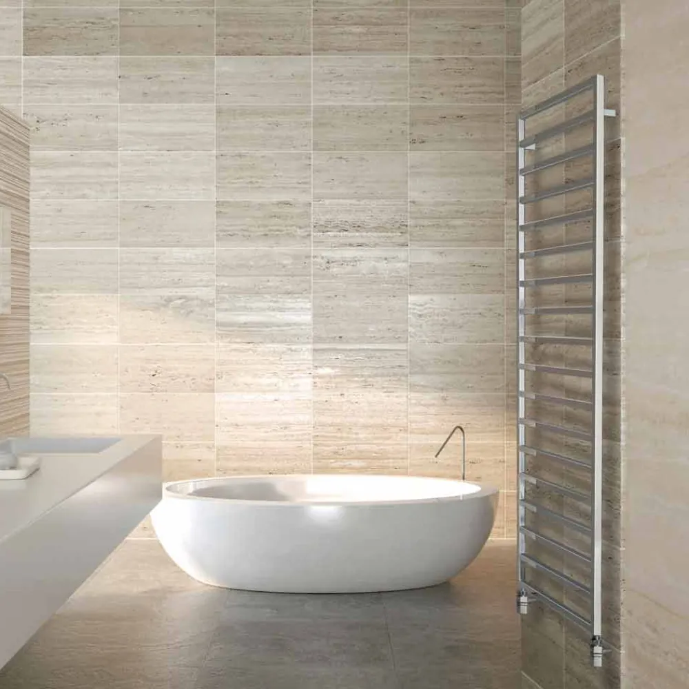 Vertikaler Messingheizkörper im modernen Stil, in der hydraulischen Version mit Chromoberfläche. Diskret und schlicht, seine edlen Baumaterialien und die besondere Fertigungstechnik machen ihn zu einem innovativen Einrichtungsheizkörper mit minimalistischem Design. In verschiedenen Größen und Abmessungen erhältlich!