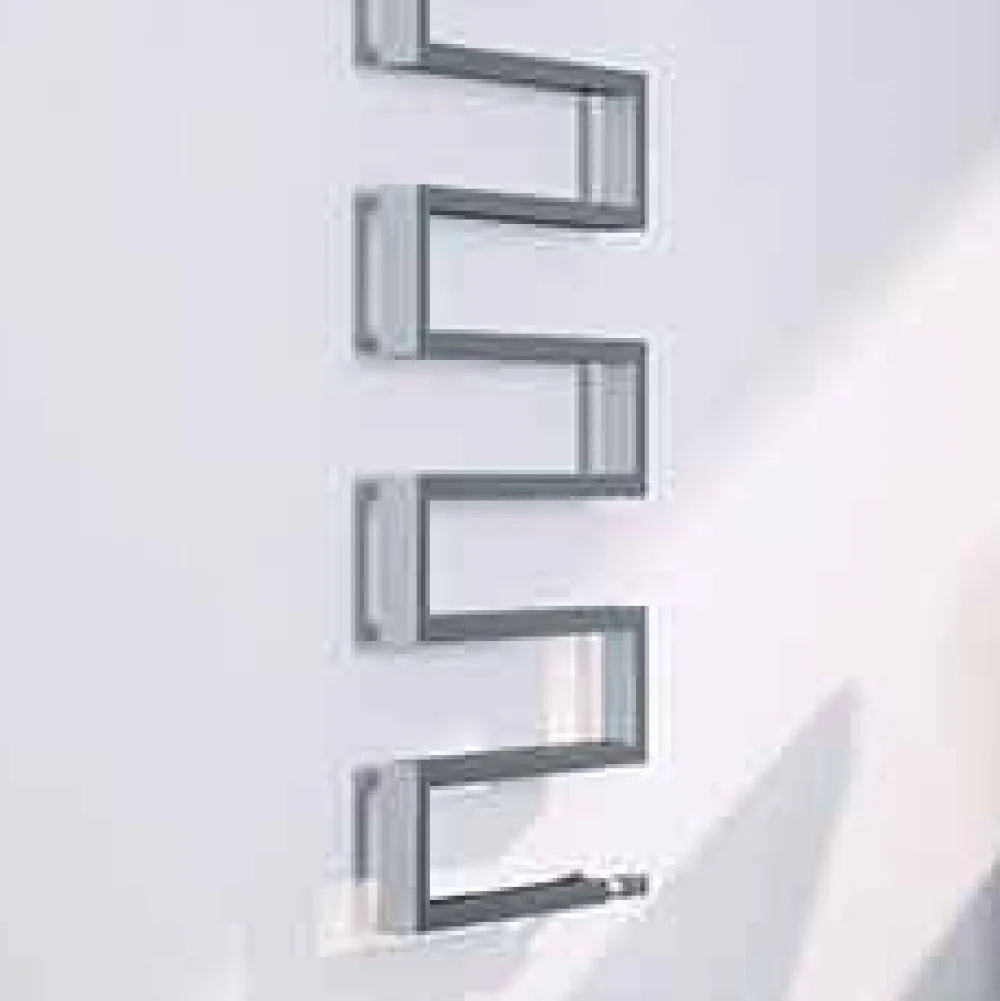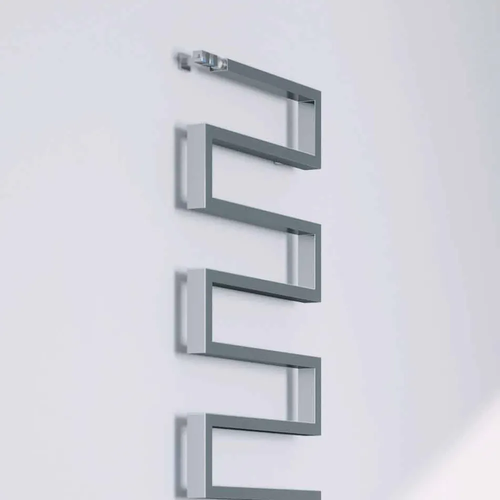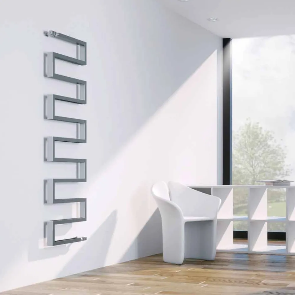 Vertikaler Heizkörper aus Chromstahl, in der hydraulischen Ausführung. Eine Kollektion mit starkem grafischen Charakter. Form, Material, Funktion und Technologie schaffen nicht mehr nur einfache Handtuchwärmer, sondern echte Einrichtungselemente.