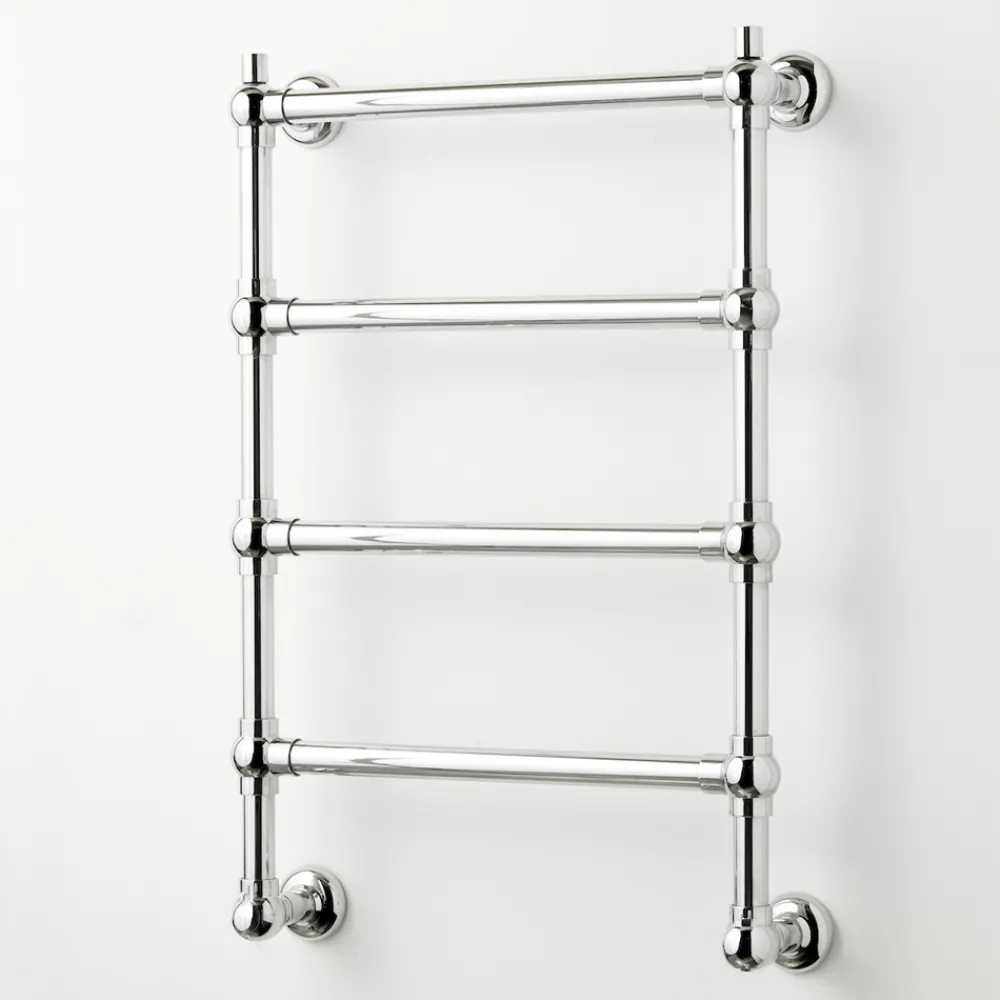 Dieser elegante Heizkörper aus verchromtem Messing ist eine ideale Heizlösung für ein Badezimmer, das keine Kompromisse bei raffiniertem Design eingeht. Mit einer sauberen und linearen Struktur, die mit horizontalen Balken ausgestattet ist, wertet er die Umgebung nicht nur mit angenehmer Wärme auf, sondern dient auch als praktischer Handtuchhalter , ideal, um Ihre Handtücher trocken und warm und gebrauchsfertig aufzubewahren.