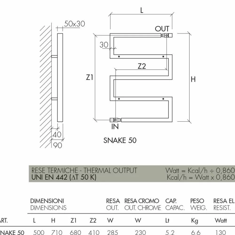 | Maße | L.500 mm, H.710 mm, Achsabstand1 680 mm, Achsabstand2 410 mm, Wärmeleistung 230 Watt, Kapazität 5,0 Lt, Gewicht 6,6 kg |