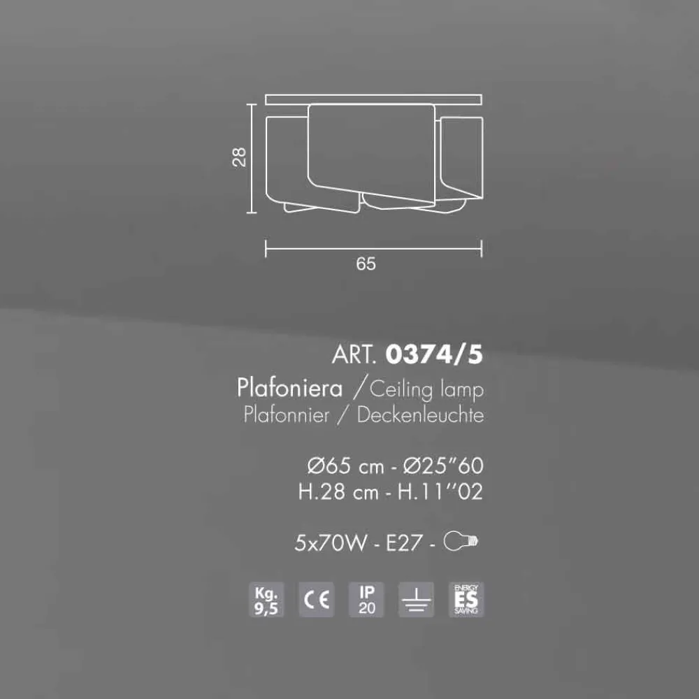Papiro ist eine unglaublich reiche und vielseitige Kollektion, die alle Arten von Lampen sammelt, die in verschiedenen Variationen von Form, Größe und Anzahl der Lichtquellen artikuliert sind. Der Diffusor mit seiner besonderen Form ist aus extraklarem Glas und in verschiedenen Ausführungen erhältlich. Vorbereitet für die Verwendung von 5 E 27 70W Glühbirnen (nicht inbegriffen).