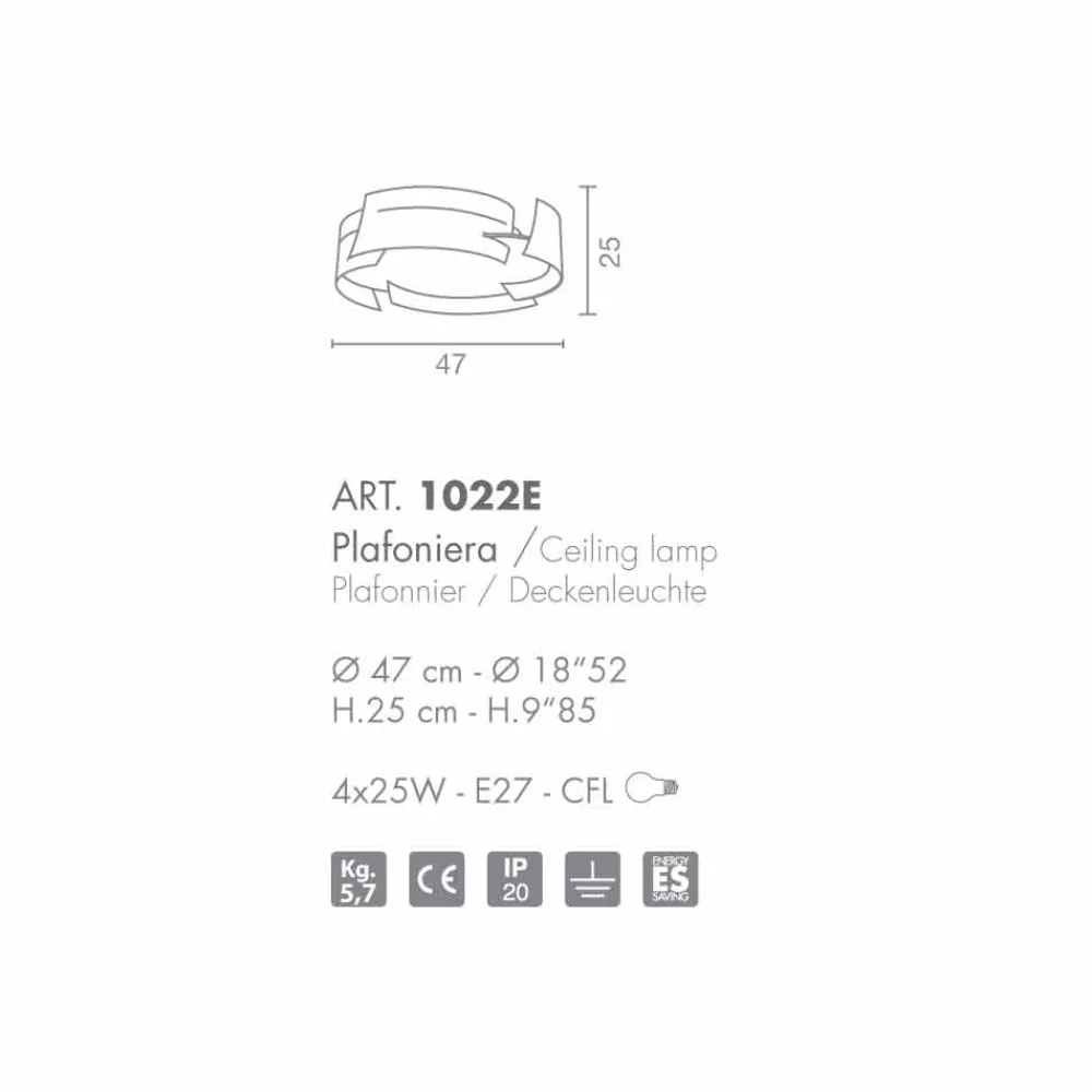 Vultur ist eine Kollektion mit einem dynamischen Design, unterteilt in zweidimensionale Aufhängungen und Deckenleuchten. Die Hauptkonstruktion besteht aus Stahl, während der Diffusor aus PMMA besteht. Die verfügbaren Oberflächen sind: weiße oder dunkle Bronze. Vorbereitet für die Verwendung von 4 Glühbirnen 25W – E27 – CFL.