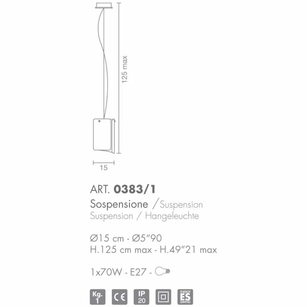 Papiro ist eine unglaublich reiche und vielseitige Kollektion, die alle Arten von Lampen sammelt, die in verschiedenen Variationen von Form, Größe und Anzahl der Lichtquellen artikuliert sind. Der Diffusor mit seiner besonderen Form ist aus extraklarem Glas und in verschiedenen Ausführungen erhältlich. Vorbereitet für die Verwendung von 1 Glühbirne E 27 70W (nicht inbegriffen).