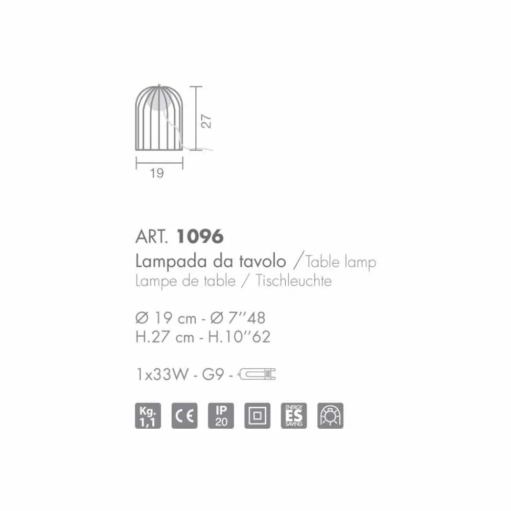 Kluvì ist eine kleine Lampe, die aus einem Metallkäfig und einer weiß geblasenen Glaskugel besteht. Verarbeitung: poliertes Kupfer; vorbereitet für die Verwendung von 1 Glühbirne 33W – G9.