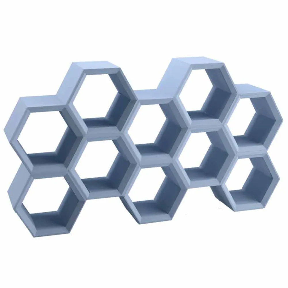 Hexa ist ein Bücherregal aus Polyethylen, dessen Form von der Natur inspiriert ist. Die verbundenen Zellen, aus denen es besteht, bilden ein vielseitiges Möbelstück, das sowohl für den häuslichen als auch für den privaten Gebrauch geeignet ist. Die geometrische Form ist elegant und ermöglicht mit ihren sechs Seiten mindestens zwei Stützseiten für jeden Raum.