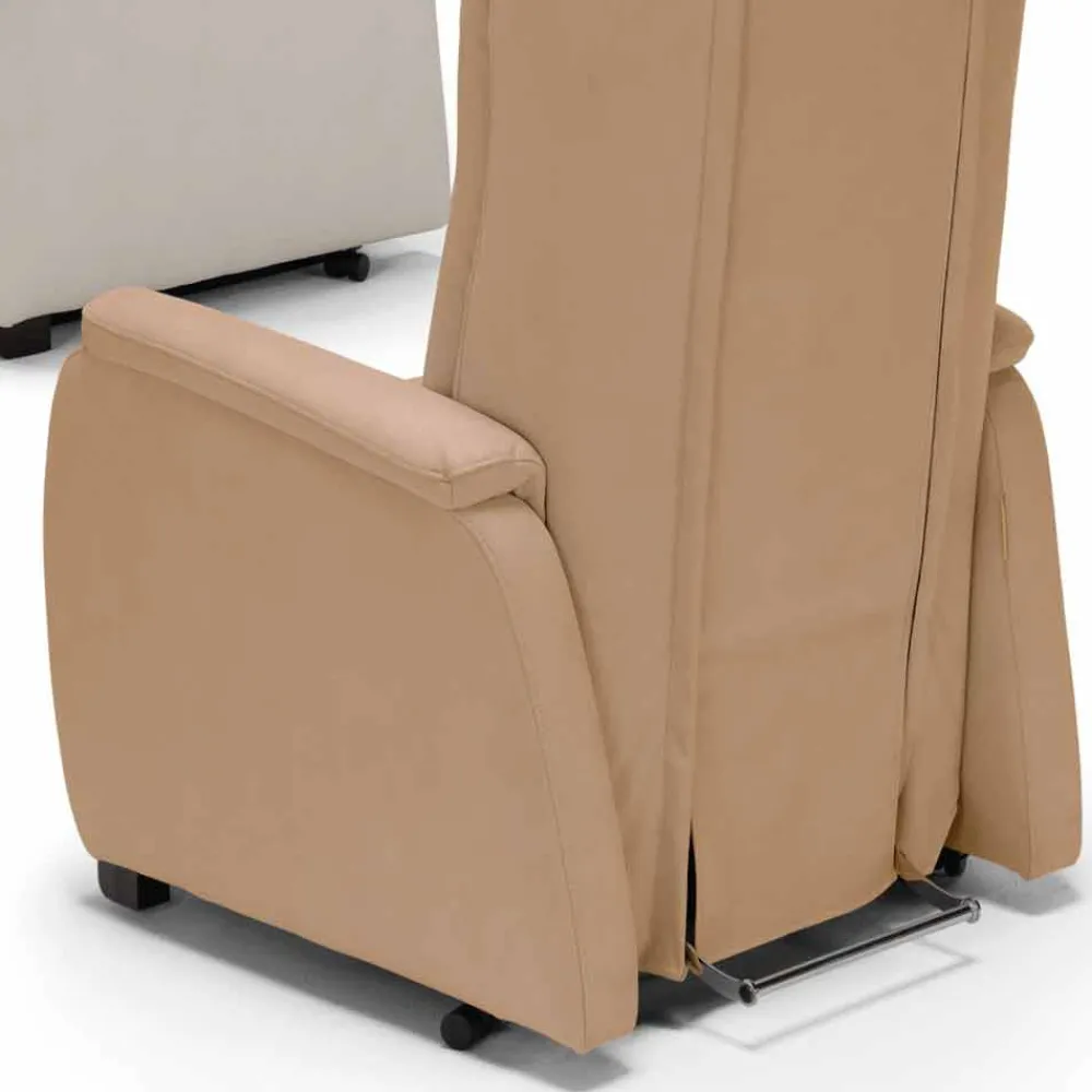 Der Design-Sessel Rosa verfügt über einen zweimotorigen Mechanismus, der die autonome Bewegung der Rückenlehne in Bezug auf die Fußstütze ermöglicht. Dieser Mechanismus ermöglicht durch eine unabhängige Auswahl der beiden Bewegungen, verschiedene Kombinationen von Entspannung zu erhalten. Zusätzlich zu den Funktionen der Entspannungsmechanik bietet dieser Mechanismus eine Hebevorrichtung , mit der Sie Personen mit Mobilitätsschwierigkeiten leicht die aufrechte Position einnehmen können. Während der Aufrichtphase hebt sich der Stuhl bis auf den Boden von 10 cm.