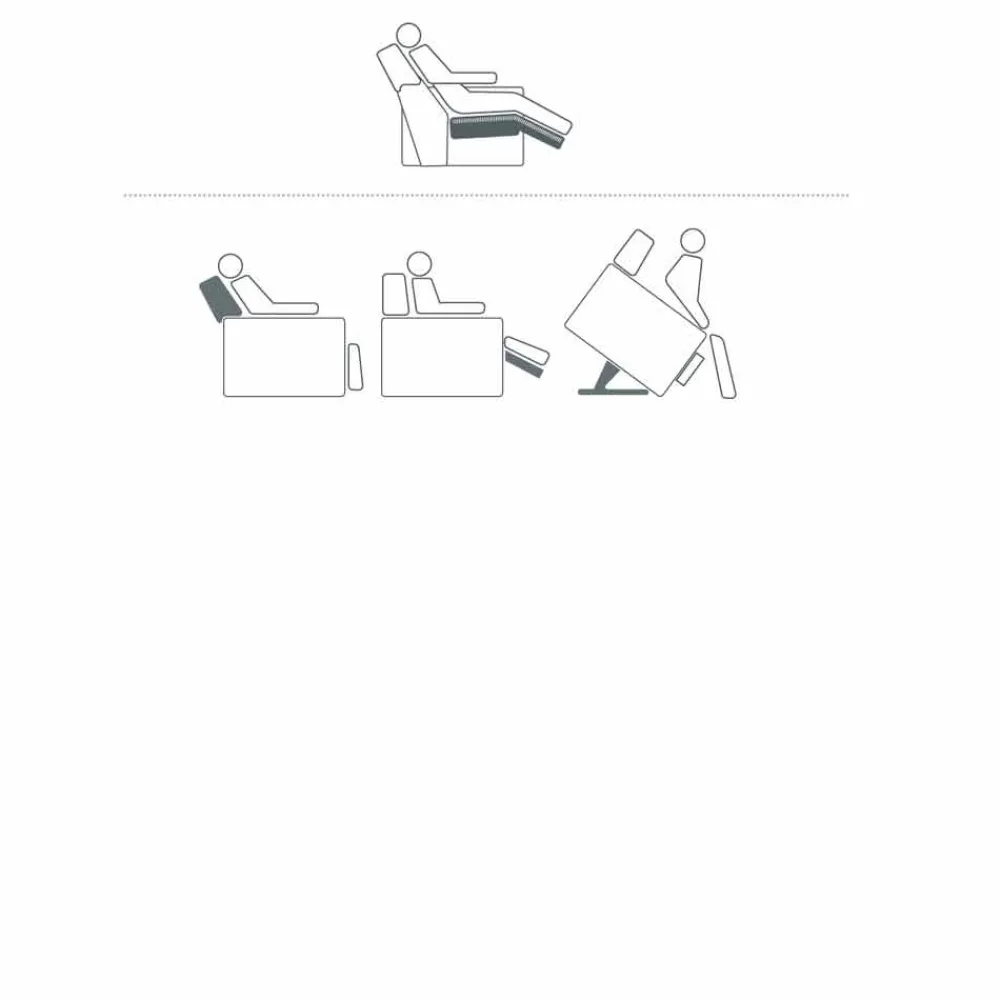 Die entwickelten Mechanismen bieten mehrere Funktionen und die Möglichkeit, in bestimmten Sitzbereichen positioniert zu werden, und ermöglichen die Zusammenstellung von Entspannungssesseln, Massagestühlen und Hebesesseln, deren Optionen den Bedürfnissen jedes Kunden entsprechen.