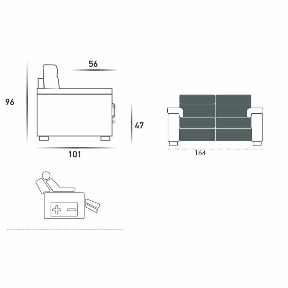 2-Sitzer motorisiertes Sofa, 2 Lilia elektrische Sitze, hergestellt in Italien