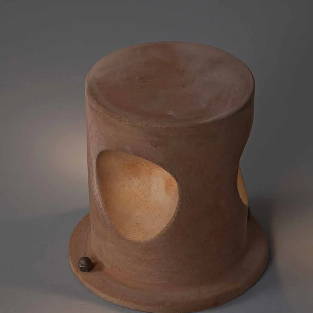 Von Hand mit feuerfesten Erden in 5 Farben berechnet, bietet es Lösungen, die sich durch minimales Volumen auszeichnen, indem kleine Nischen geschaffen werden, in denen sich das Licht verbirgt, aber beleuchtet.