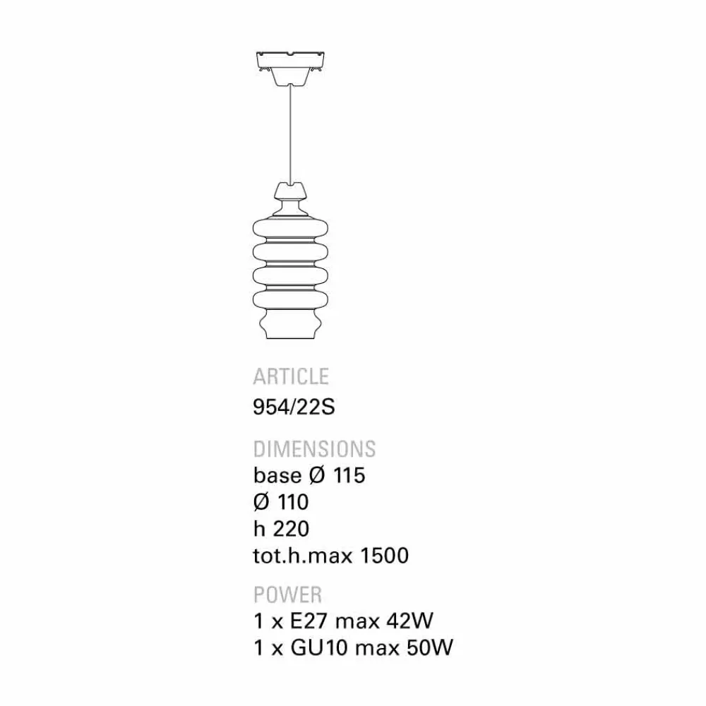 | Maße | Rosette Ø115 mm; Diffusor Ø110 mm; h.220 mm; tot.h. Max. 1500 mm |