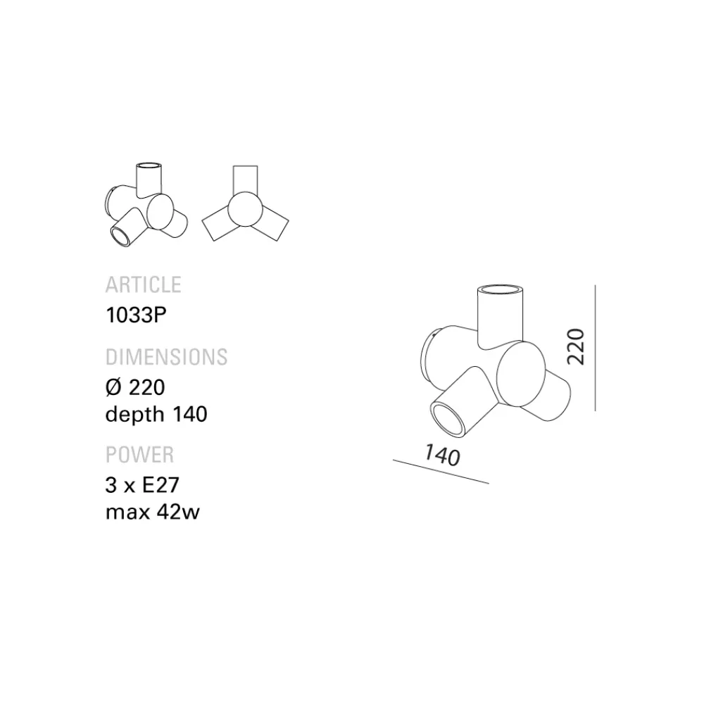 Das Modell besteht aus einem zentralen Zylinder, der den elektrischen Anschluss enthält, von dem weitere seitliche Zylinder in verschiedenen Positionen abzweigen. Es besteht aus gegossener weißer Keramik, ist emailliert und bei über 1000 Grad doppelt gebrannt. Die Metallteile sind in verschiedenen Farben gehalten, darunter Weiß und Orange, inspiriert von den ersten Industrieprodukten der 60er Jahre, oder fluoreszierendes Grün wie die Warnkleidung der Straßenarbeiter.