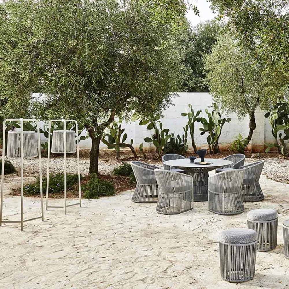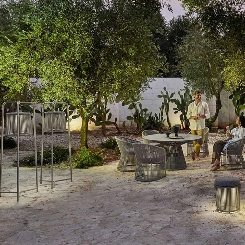 Aluminium-Gartenlampe mit Fasergeflecht und LED inklusive Made in Italy.