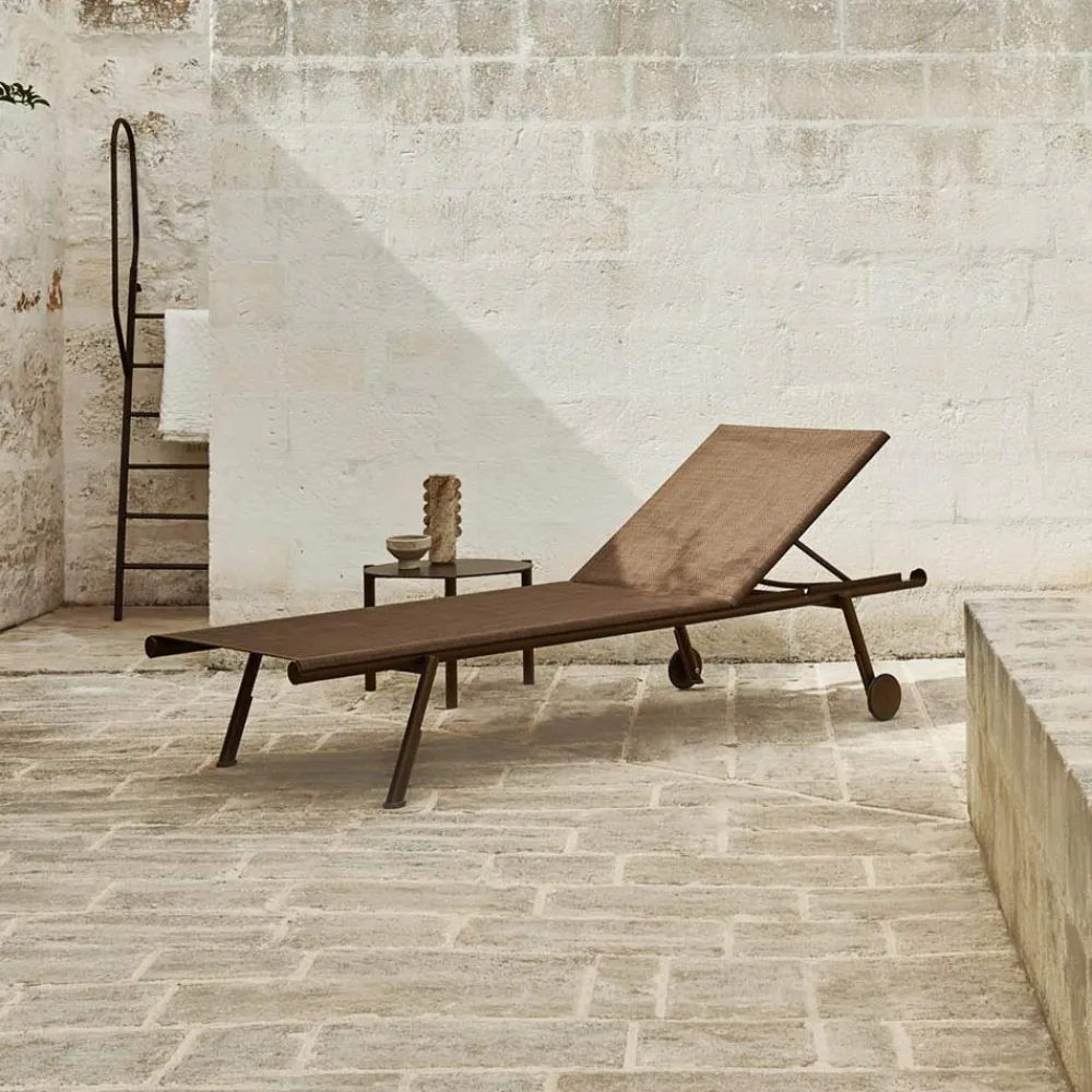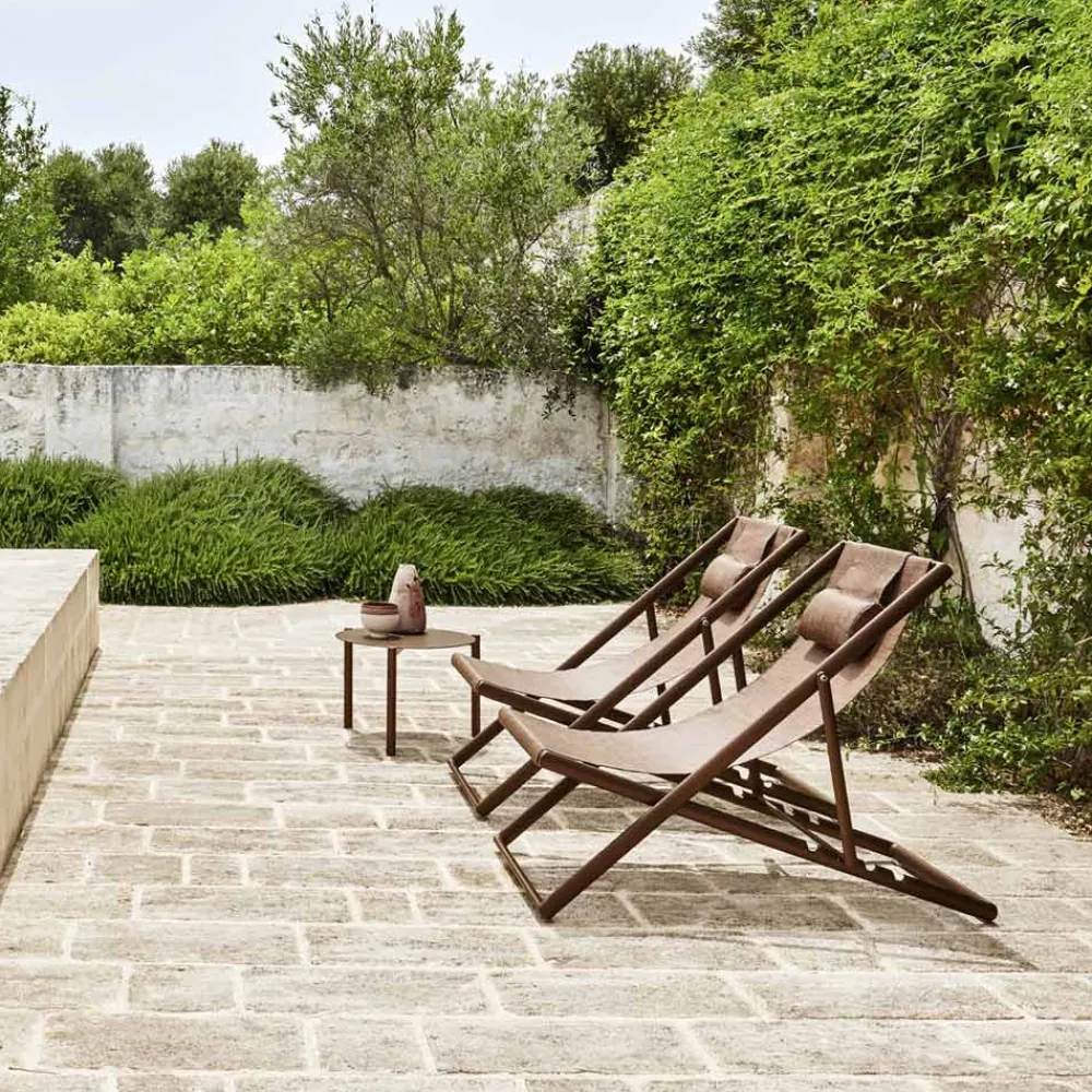 Garten-Couchtisch bestehend aus Platte und Struktur aus pulverbeschichtetem Aluminium in Metallbronzefarbe. Dank seines geradlinigen, sauberen und einfachen Designs eignet sich dieser Couchtisch perfekt zur Dekoration von Außenbereichen wie Terrassen, Schwimmbädern und Gärten, findet aber auch in den verschiedenen Wohnbereichen im Innenbereich seinen Platz.