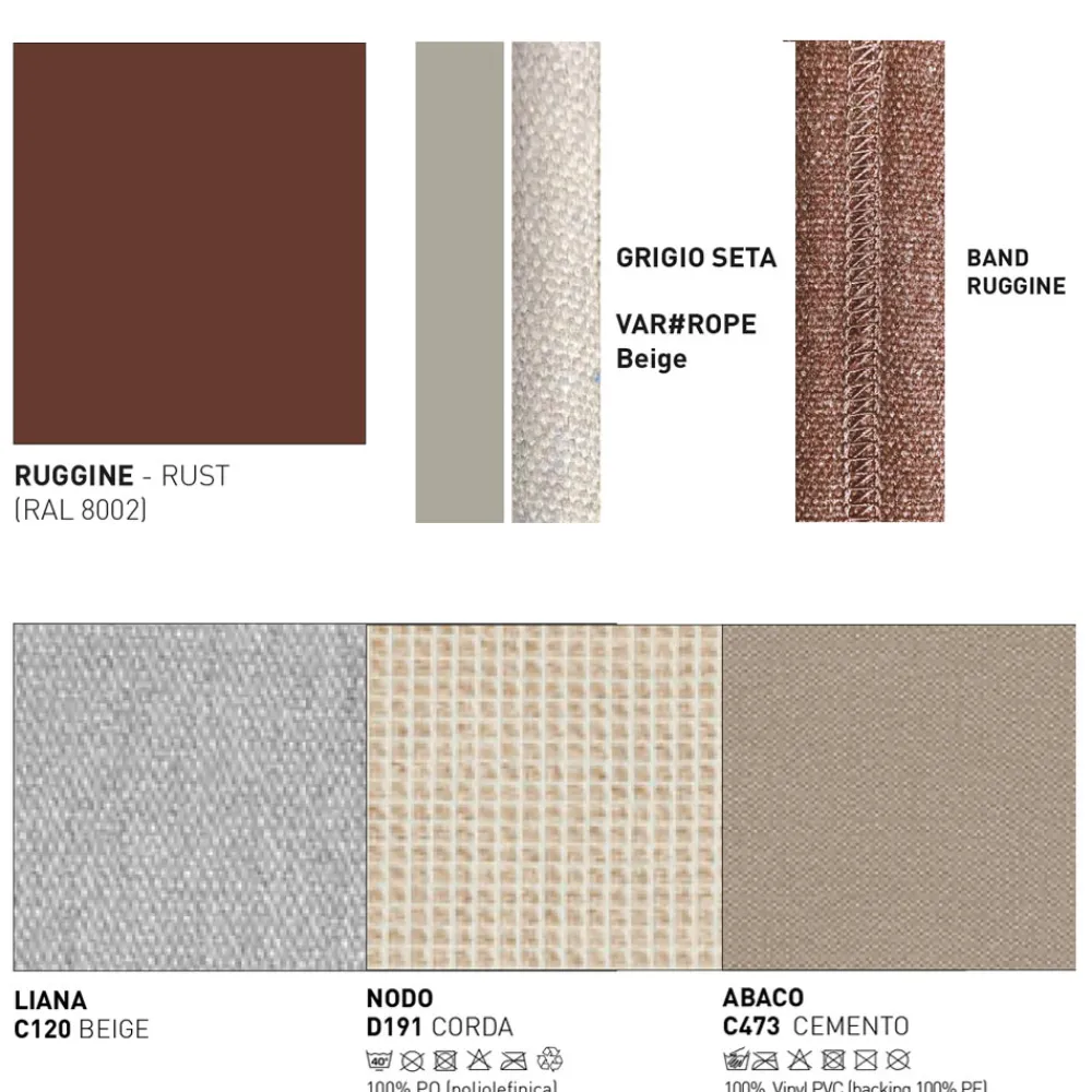 Die Struktur und die Füße bestehen aus mit Epoxidpulver beschichtetem Aluminium, ein Verfahren, das dieses Sofa widerstandsfähig und einfach zu handhaben macht, ideal für den Einsatz im Freien. Eine innovative und frische Einrichtungslösung, bereichert durch die wunderbaren verfügbaren Oberflächen, die Ihre Außenbereiche mit Raffinesse und Persönlichkeit verwandeln.