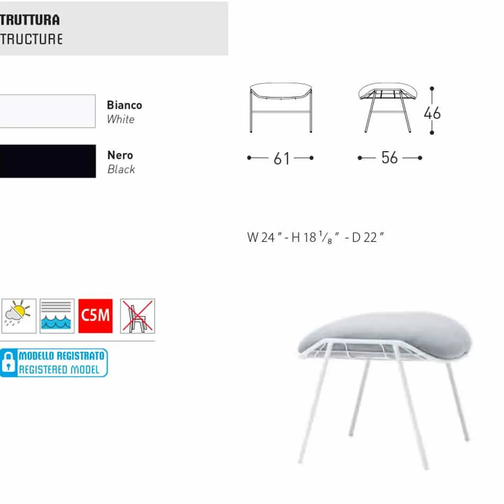 Summer Set ist eine fantastische Outdoor-Pouf/ Fußstütze mit einer tragenden Struktur aus pulverbeschichtetem Stahl in zwei verschiedenen Farben lackiert: weiss oder schwarz. Die Sitz- und Rückenkissen sind mit Stoff bezogen und mit Dryfeel-Gummi gepolstert.