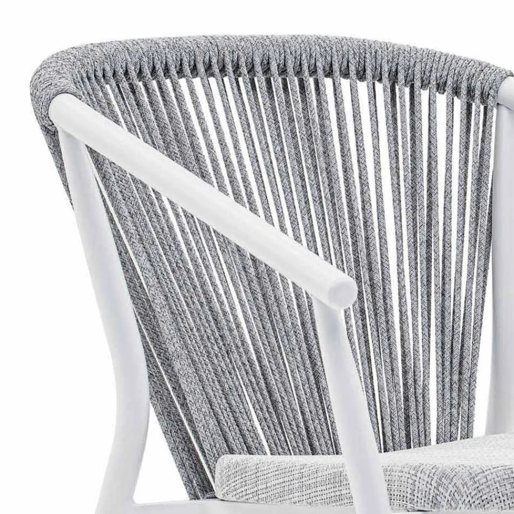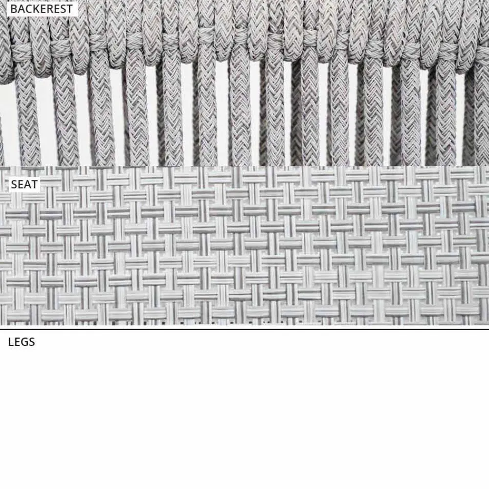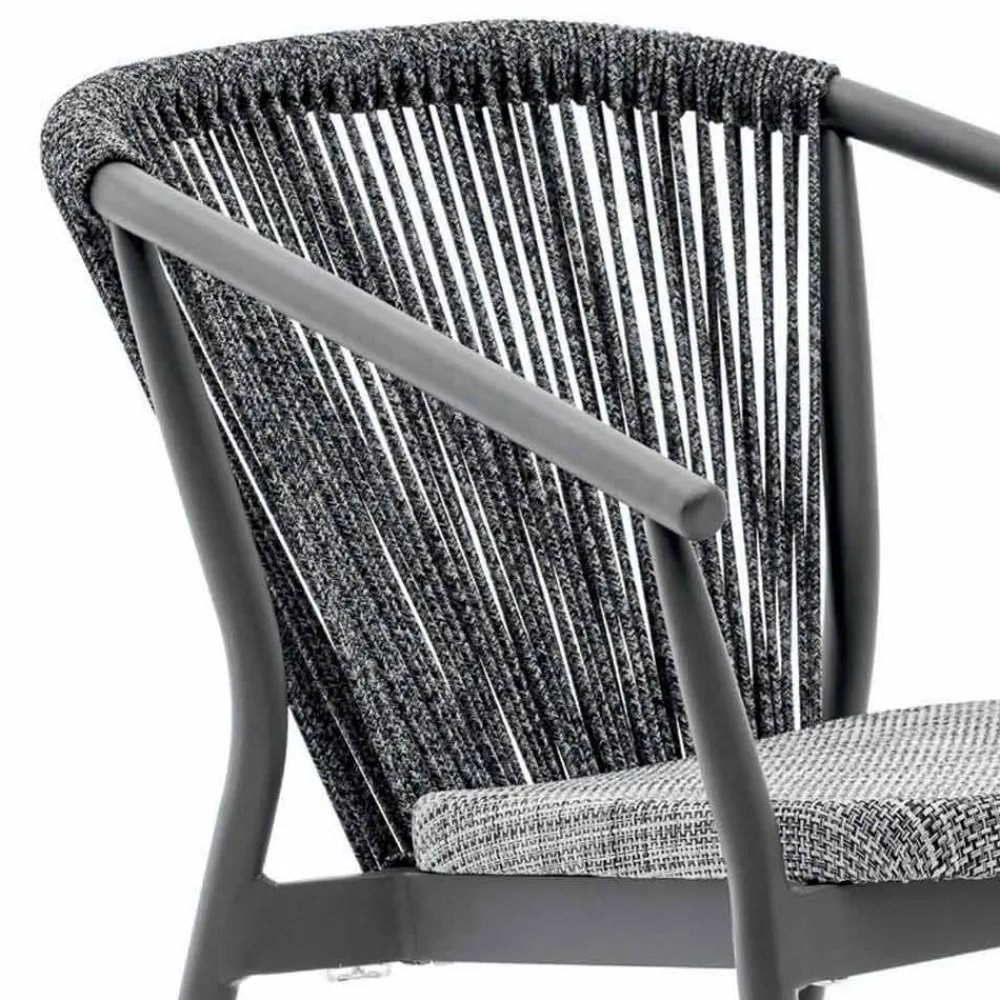 Smart wurde mit einer lackierten Aluminiumstruktur , einem Sitz aus technischem VAR # TEX-Stoff und einer Rückenlehne aus synthetischem VAR # TEX-Kabel (technischer Stoff aus PVC) hergestellt.