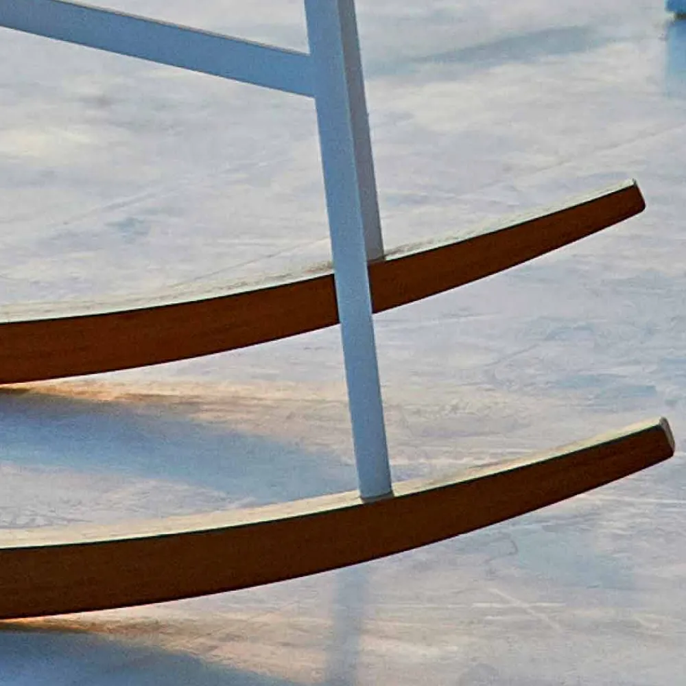 Summer Set ist ein angenehmer Schaukel-Gartensessel mit einer tragender Struktur aus pulverbeschichtetem Stahl in weiss lackiert und Schlitten aus natürlichen massivem Irokoholz.
