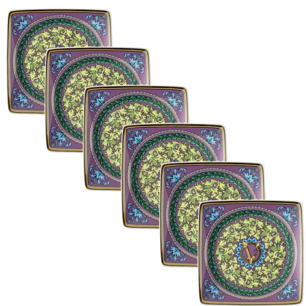 6 Versace Barocco Mosaik flache quadratische Tassen aus Porzellan