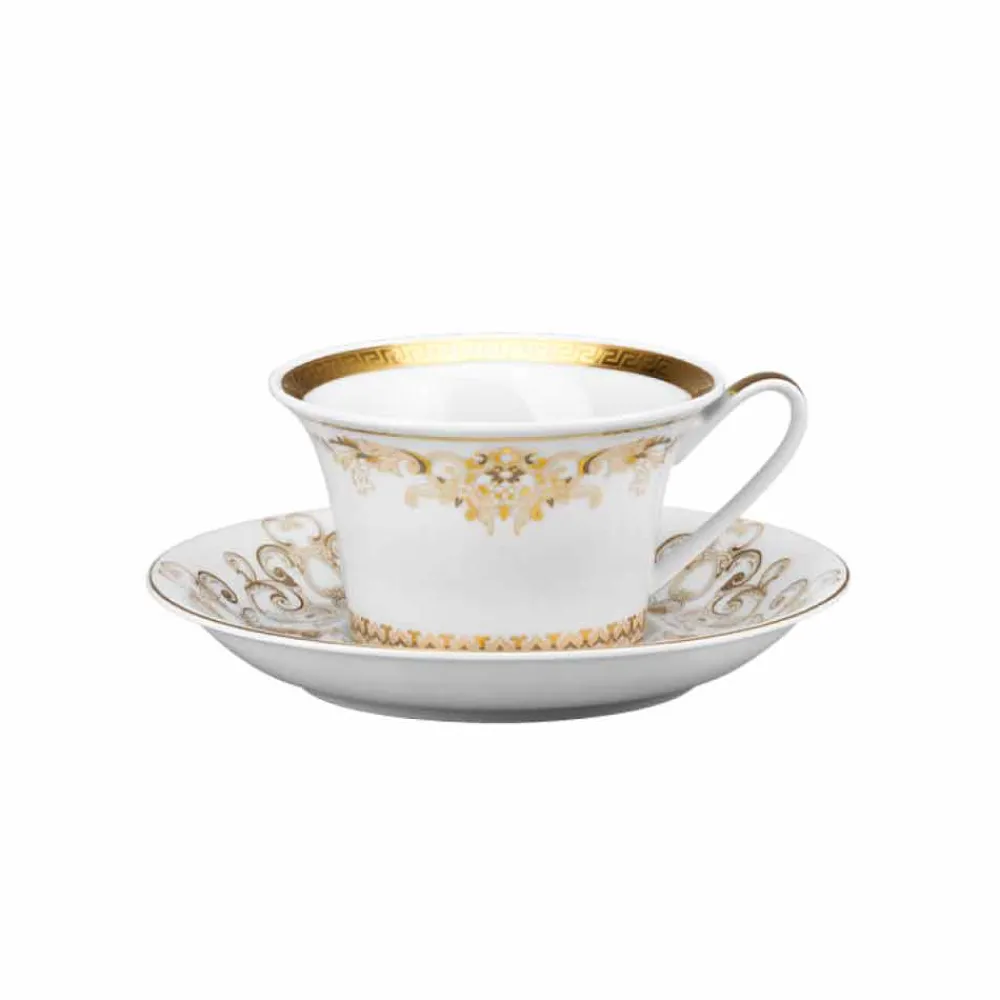 In diesem Set mit 6 Teetassen Die ganze Raffinesse und der Luxus der neuen Geschirrkollektion Medusa Gala sind darin enthalten, die in Design und Dekoration die traditionellen Versace- Motive neu interpretiert: Das Medusa-Symbol wechselt sich mit raffinierten barocken Ornamenten in kostbarem Goldfiligran ab. Ein spannender Kontrasteffekt zwischen dem Weiß des Porzellans und reinem Gold schafft eine perfekte Inszenierung, modern und zugleich einzigartig.