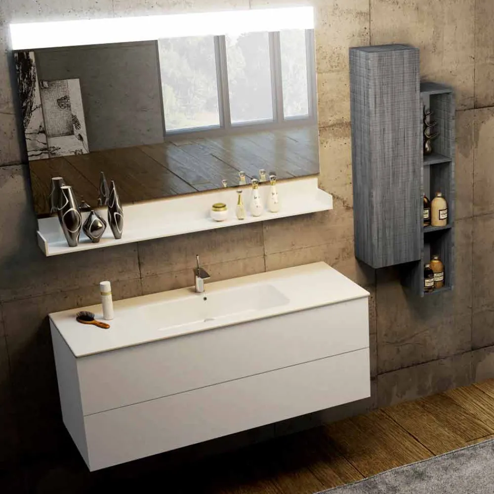 – ein Waschbeckenunterteil aus weißem Fenix Kos; L120xH48xP46cm;