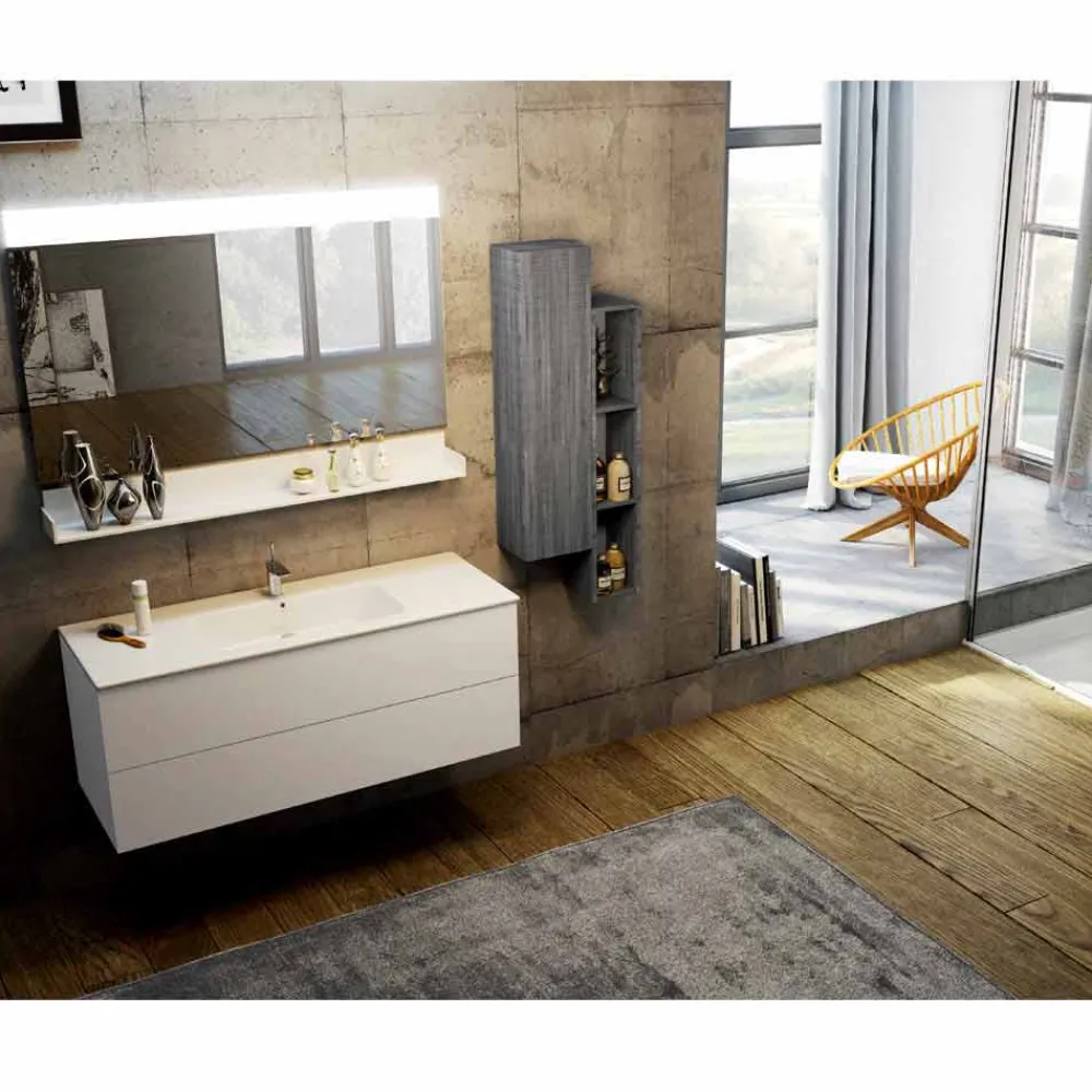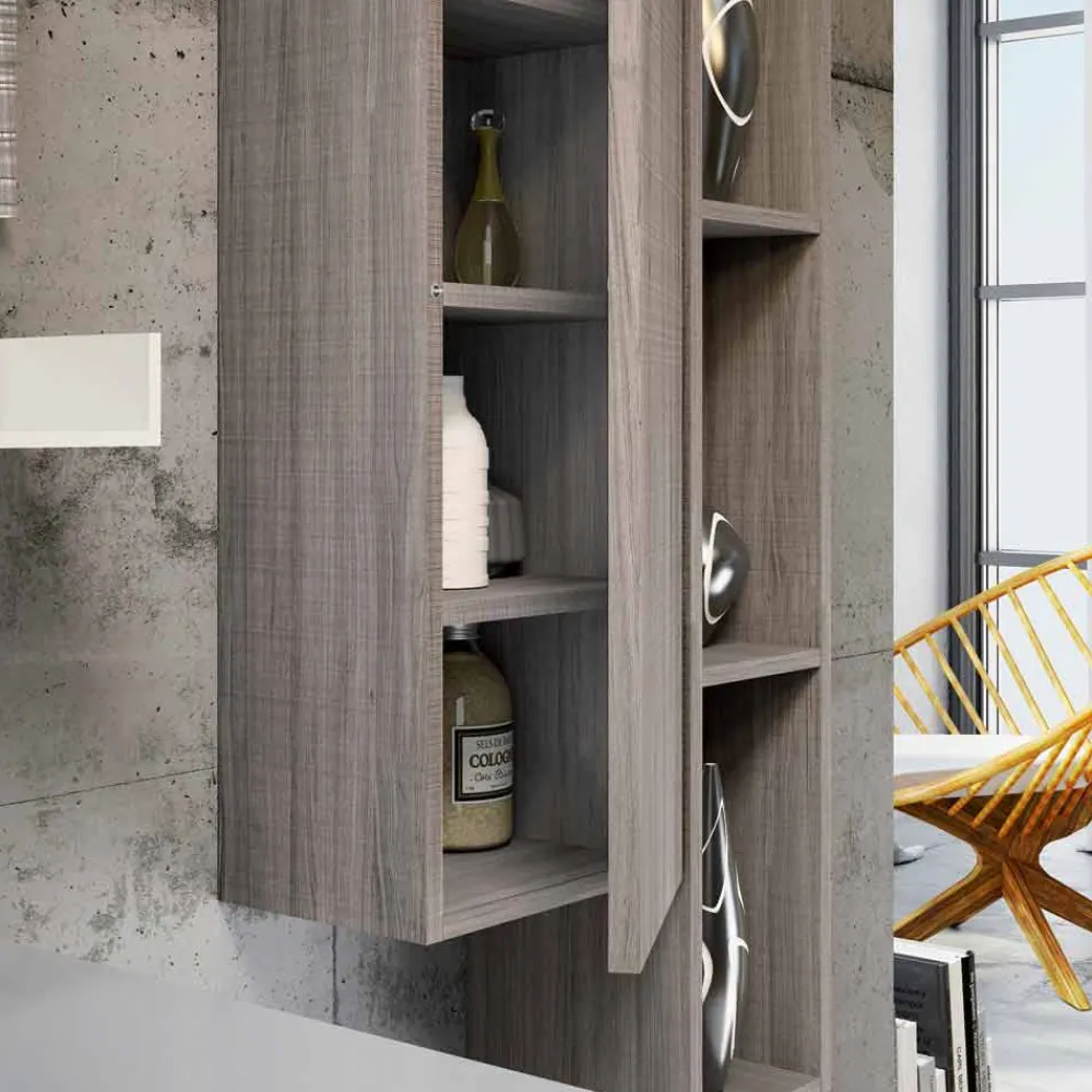 Bari ist eine hängende Badezimmerkomposition aus Ecowood und Fenix, die Nachhaltigkeit und Respekt für die Umwelt mit Forschung und Innovation verbindet, was zu perfekten Materialien für Ihr Badezimmer führt.