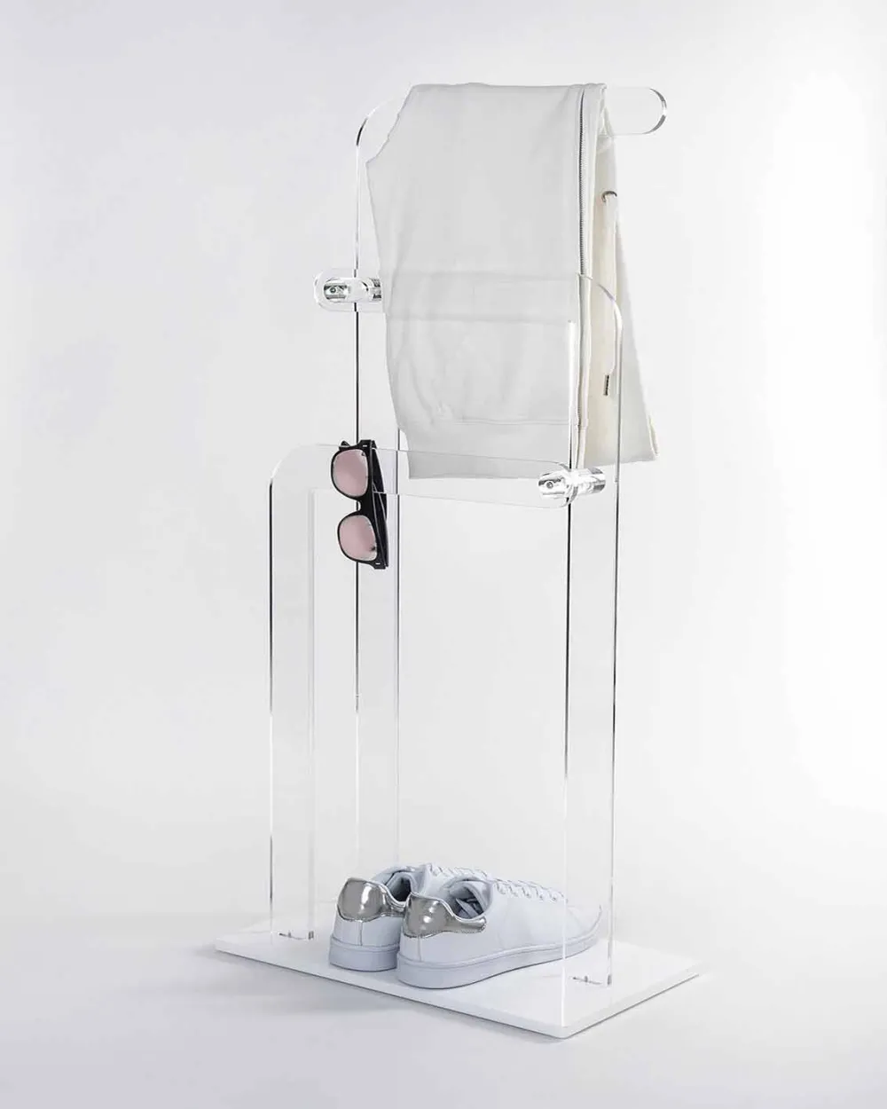Praktisch, vielseitig und vielseitig einsetzbar. Zanica ist bei Bedarf sowohl als Parkservice als auch als Handtuchhalter erhältlich. Seine Helligkeit und Brillanz bleiben im Laufe der Zeit unverändert. Das verwendete PMMA-Plexiglas aus jungfräulichem Polymer ist ungiftig, hypoallergen, geruchlos und antibakteriell. 100% wiederverwertbar.