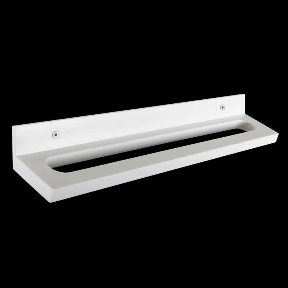 Wandmontierter Handtuchhalter aus weißem Corian mit sichtbaren Schrauben, made in Italy Design.