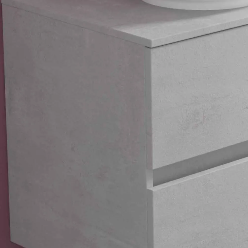 Der Waschbeckenboden mit 1 Standardschublade und 1 geformten Schublade besteht aus laminierter und wasserabweisender Hydro W 100-Holzfaser , um eine längere Lebensdauer zu gewährleisten und zu verhindern, dass der Schrank bei Kontakt mit Wasser beschädigt wird.