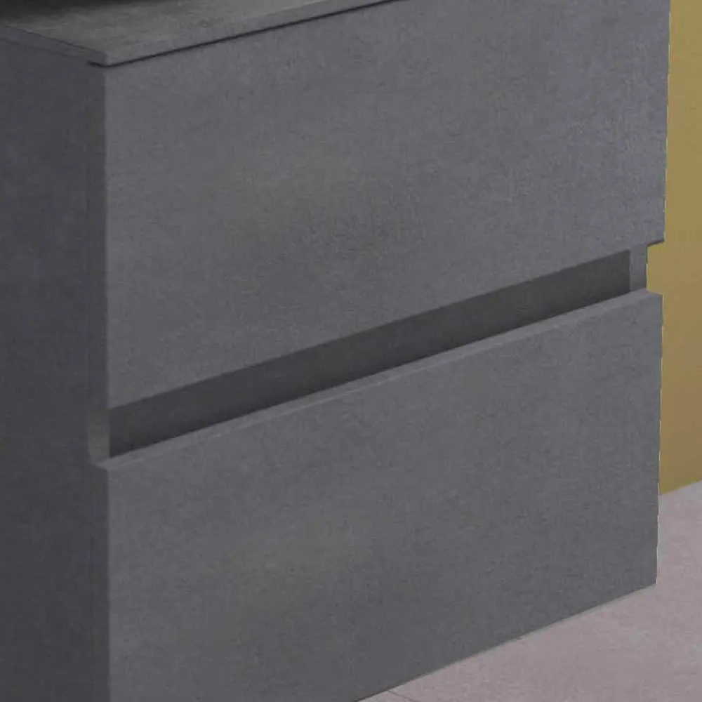 Der Waschtischboden mit Schublade und geformter Schublade besteht aus laminierter und wasserabweisender Hydro W 100-Holzfaser , um eine längere Lebensdauer zu gewährleisten und zu verhindern, dass der Schrank bei Kontakt mit Wasser beschädigt wird.