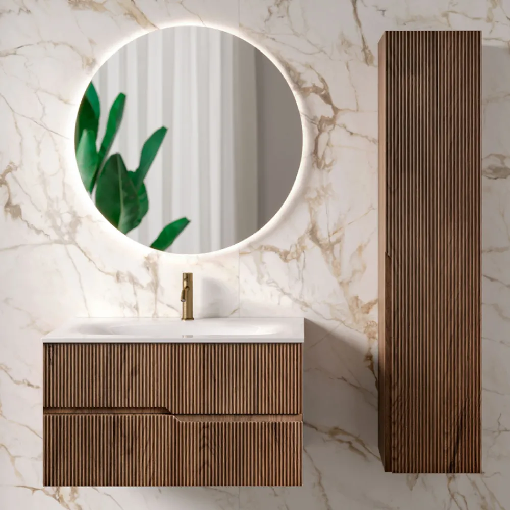 Badezimmerkomposition aus gerippter Rio-Eiche Made in Italy