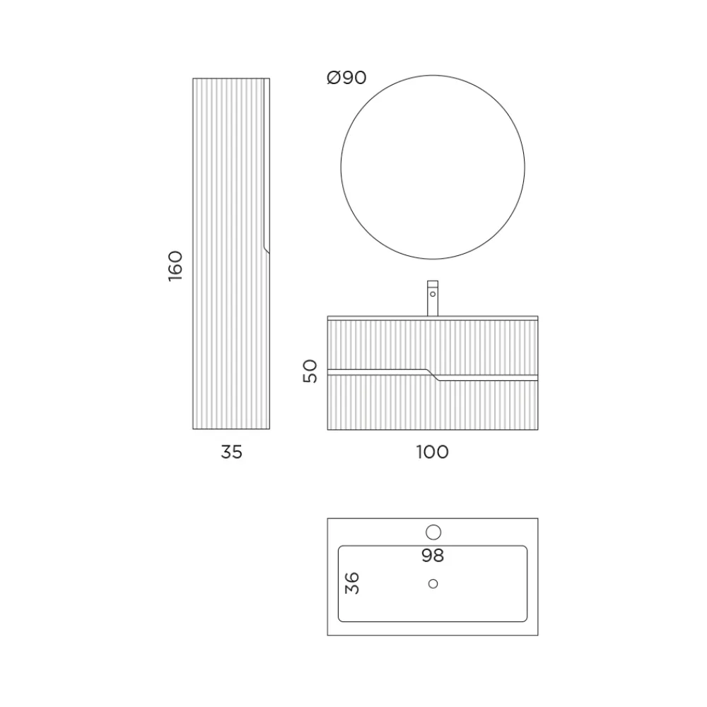 - Spiegel: Durchmesser 90 cm x Tiefe 2,5 cm