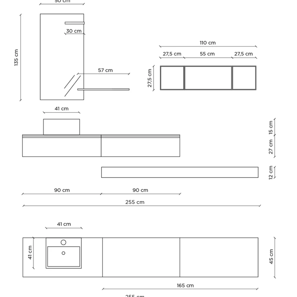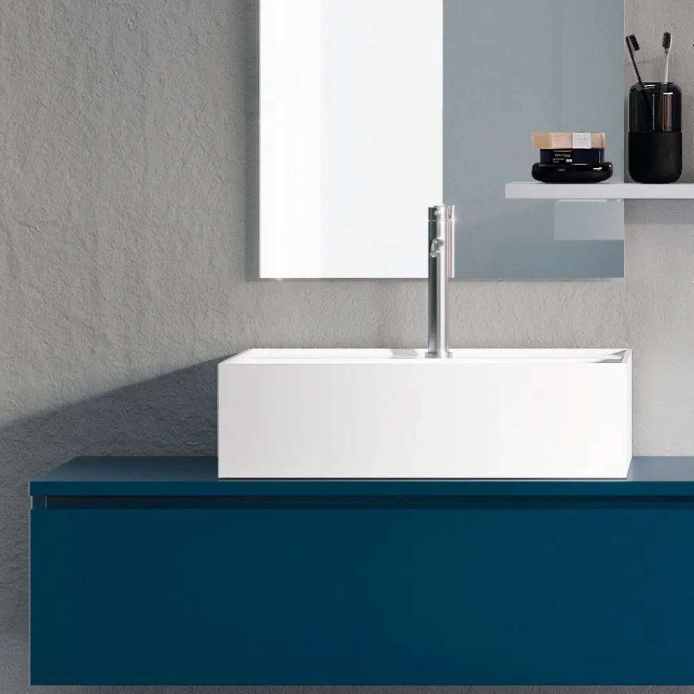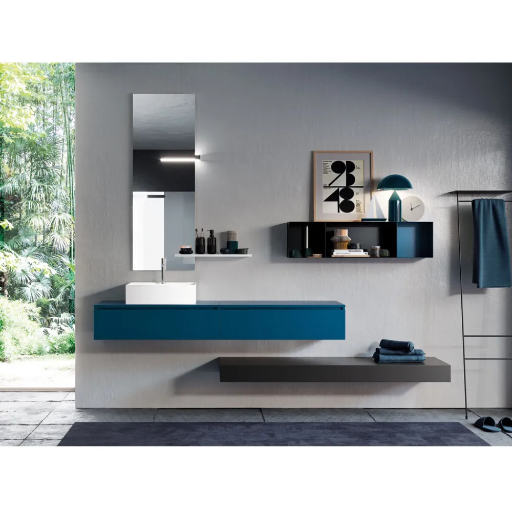Badezimmerkomposition komplett mit Aufsatzwaschbecken und rechteckigem Spiegel. Made in Italy.