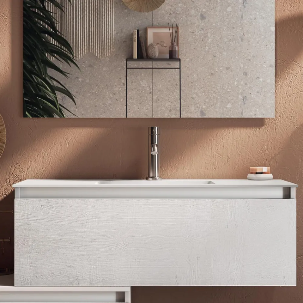 Diese Badmöbel sind perfekt, um dem Badezimmer eine einzigartige Note zu verleihen, ohne auf die Qualität und Funktionalität zu verzichten, die sie auszeichnen. Durch die Verbindung von Oberflächen und Materialien entsteht ein einzigartiges Produkt, das alle Designanforderungen erfüllt.
