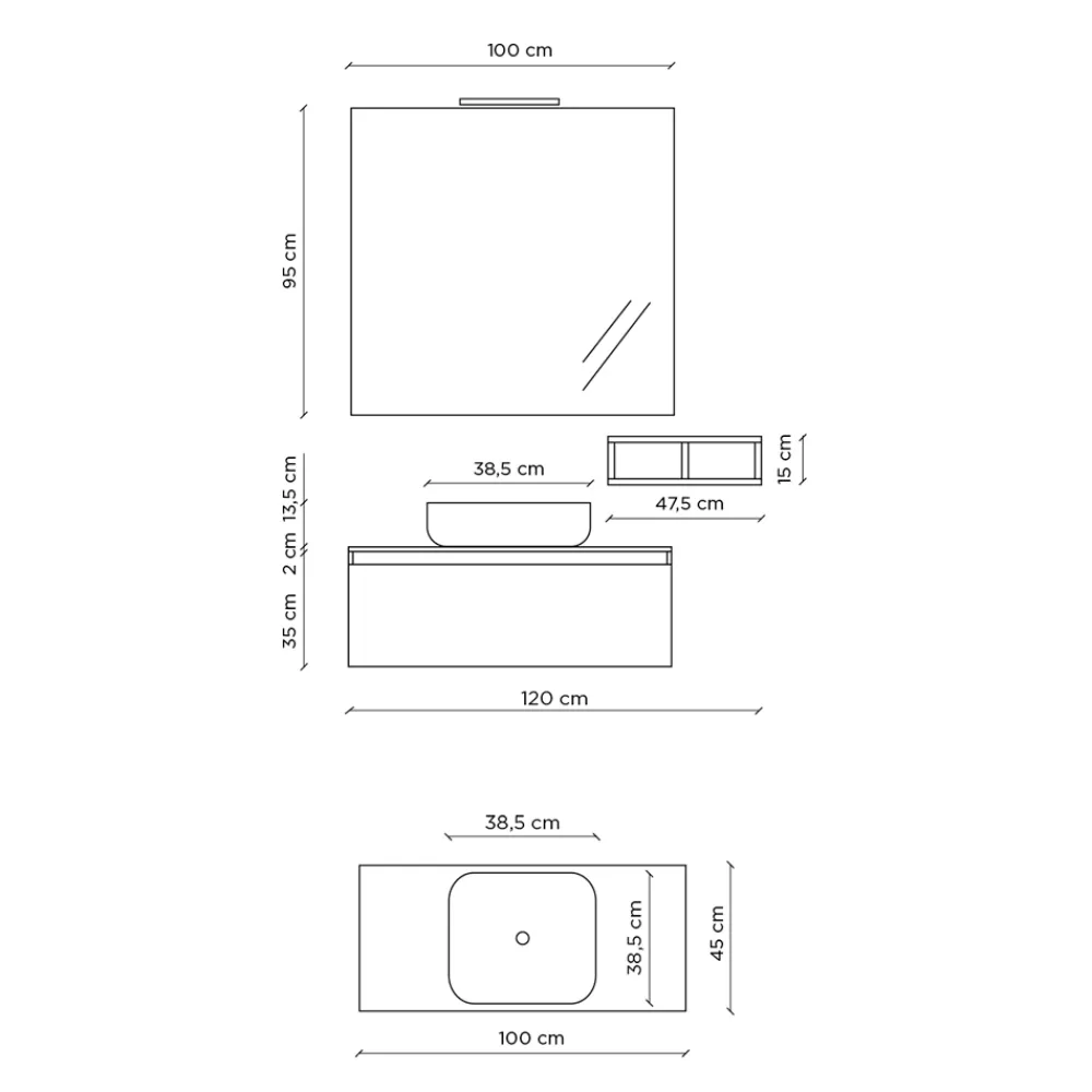 Basis: L 100 cm x T 45 cm x H 37 cm
