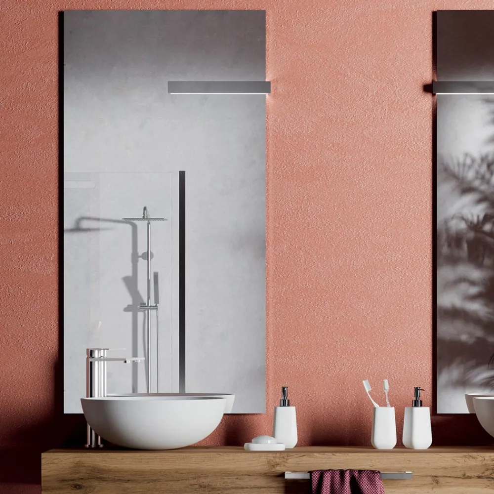Die Komposition im modernen Stil verleiht der Umgebung eine raffinierte und raffinierte Atmosphäre. Die Oberflächen und Materialien vereinen sich zu einem Badezimmerschrank mit großer optischer Wirkung , der sowohl funktional als auch hochwertig ist .
