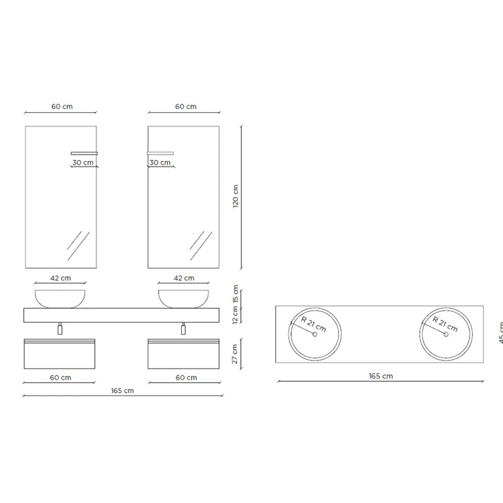 Basis: L 60+60cm x H 27cm x T 45cm
