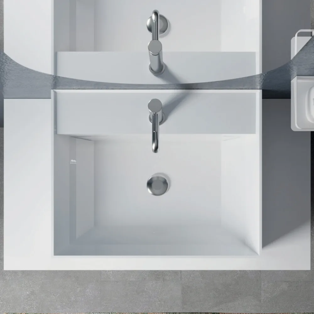 NB: Mischbatterie, Ablaufgarnitur und Wasserhahn nicht im Lieferumfang enthalten.