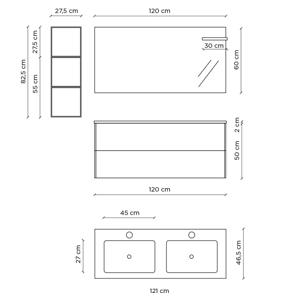 Basis: L 121 cm x T 46,5 cm x H 52 cm
