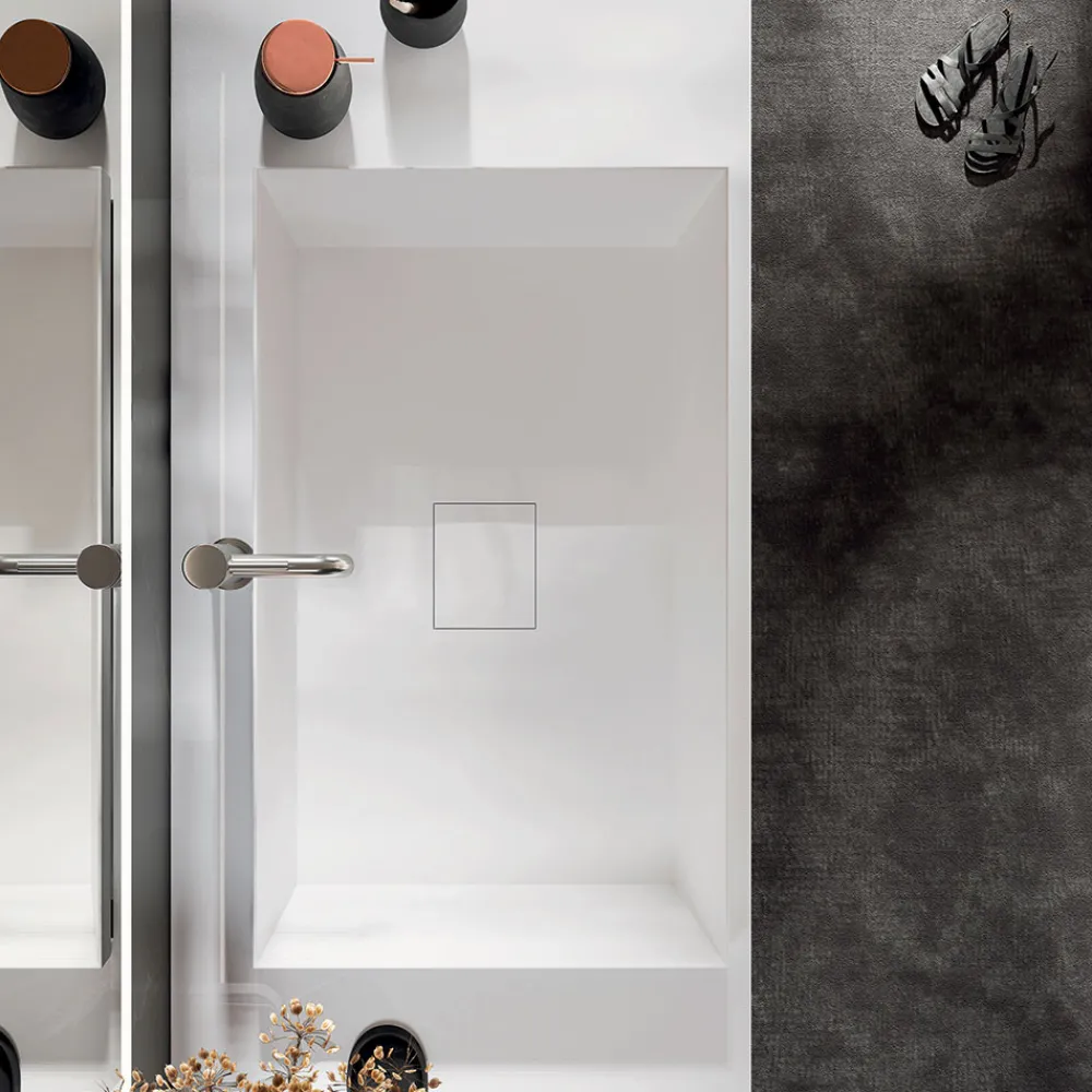 Badezimmerkomposition komplett mit Harzwaschbecken, Spiegel und kratzfestem Sockel. Made in Italy.
