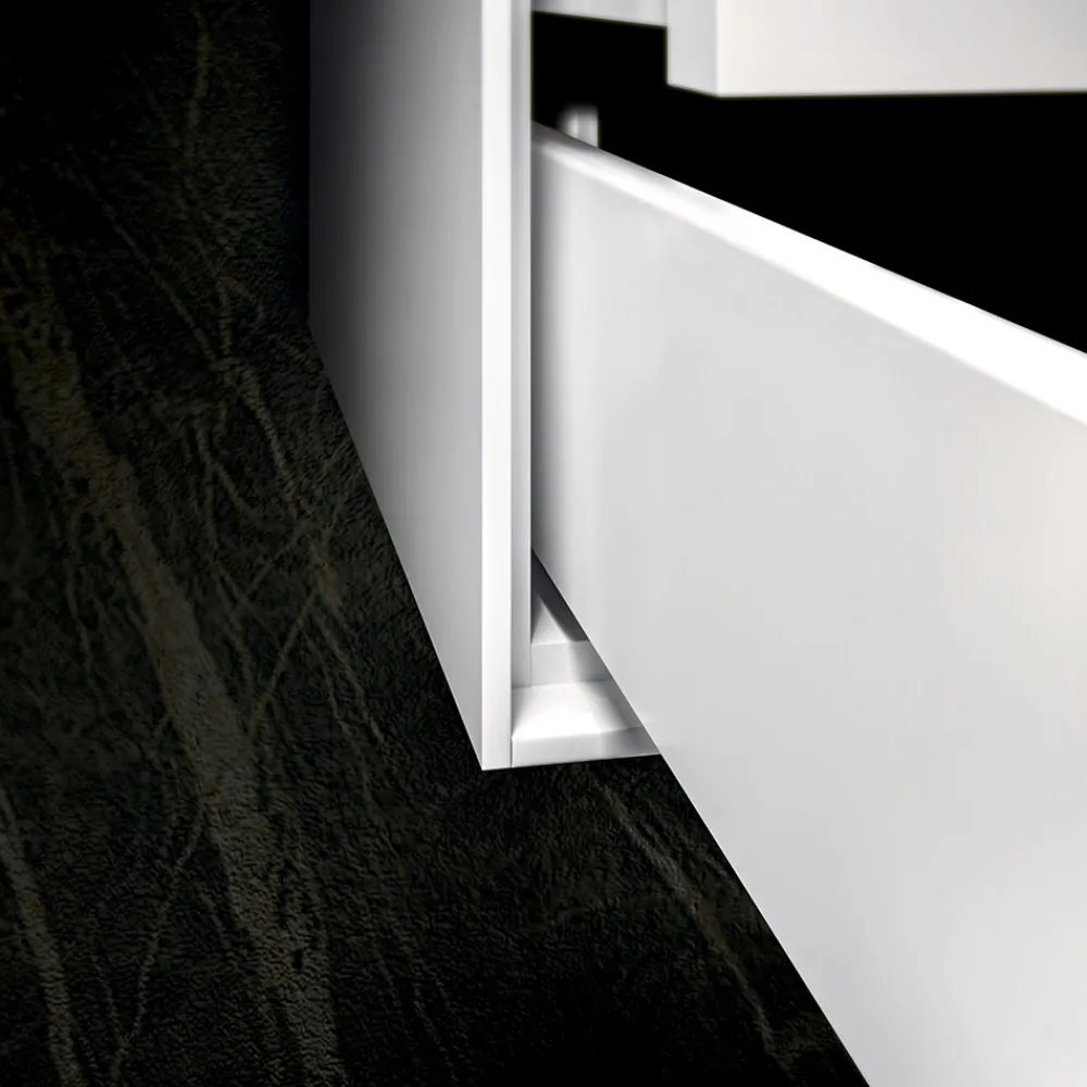 Durch die Kombination von Oberflächen und Materialien entstehen elegante, hochwertige und funktionale Badezimmermöbel.